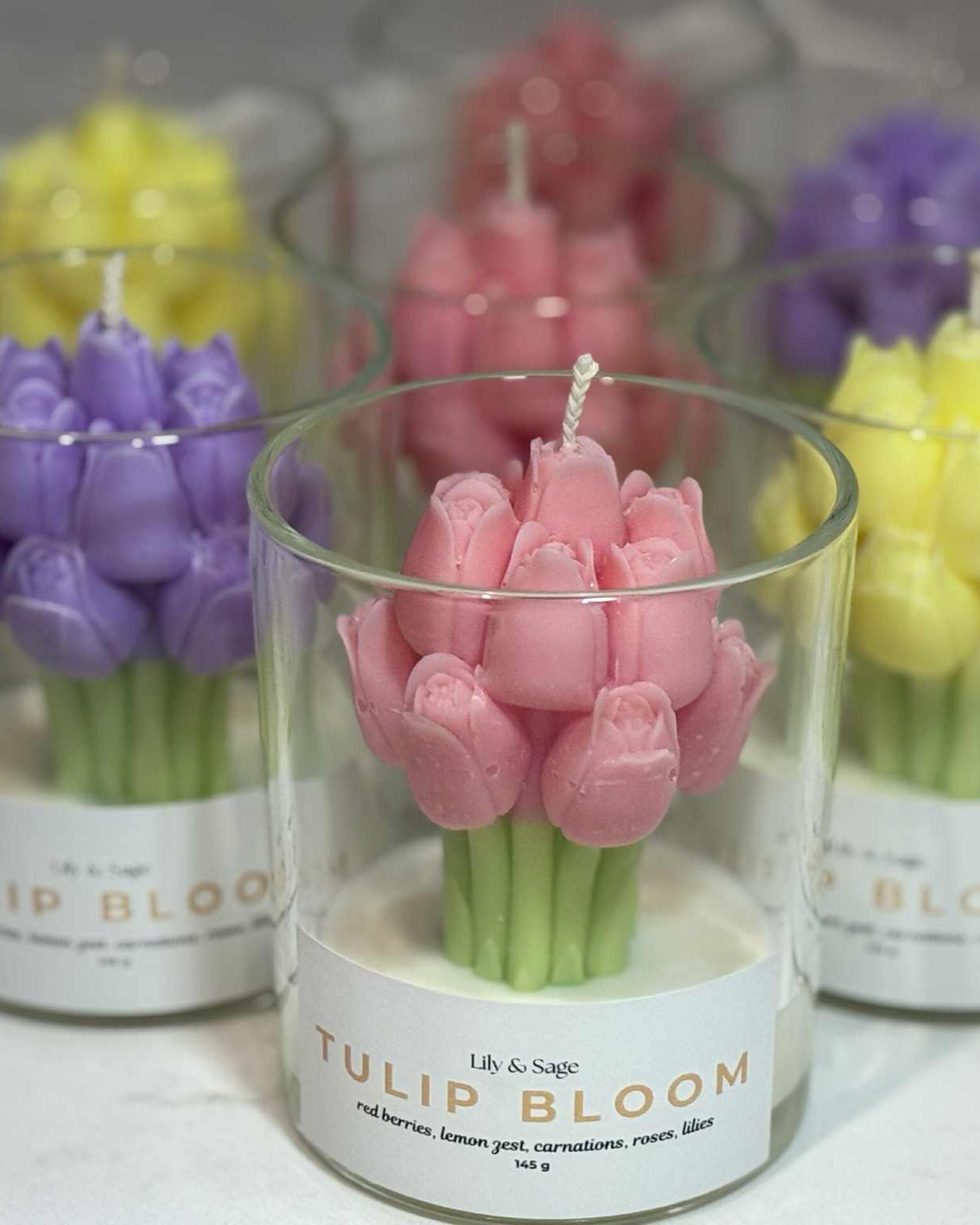Pink Tulip Bloom captures the essence of a fresh flower shop with its refined tulip fragrance. This candle offers a balanced blend of natural floral notes that enhances any room with the subtle freshness of spring blooms